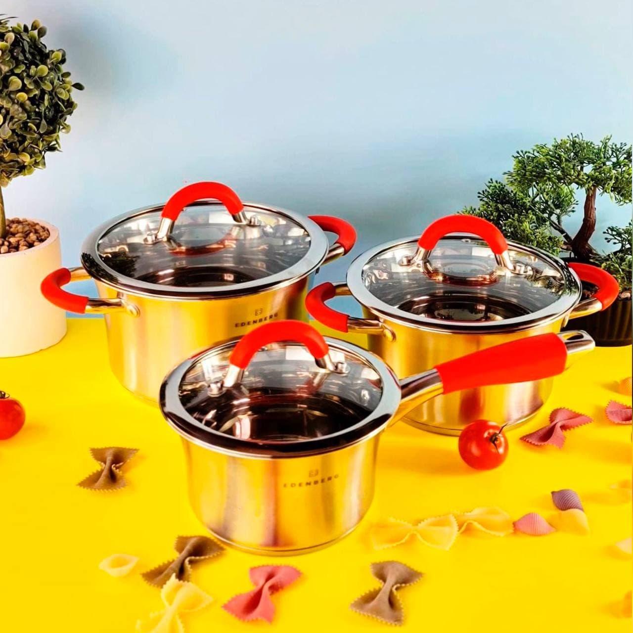 Набір посуду з нової преміум лінії відомого бренду Edenberg, який завоював довіру і любов десятків тисяч домогосподарок Європи і України. Вони дають вам змогу довго і ефективно виконувати свої обов’язки, і це захищає їх від деформацій та пошкоджень.