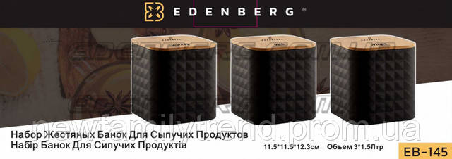 | Тип призначення | Набор жестяных банок для сыпучих продуктов 3шт Edenberg EB-147 Набор емкостей для сыпучих продуктов 1300 мл |